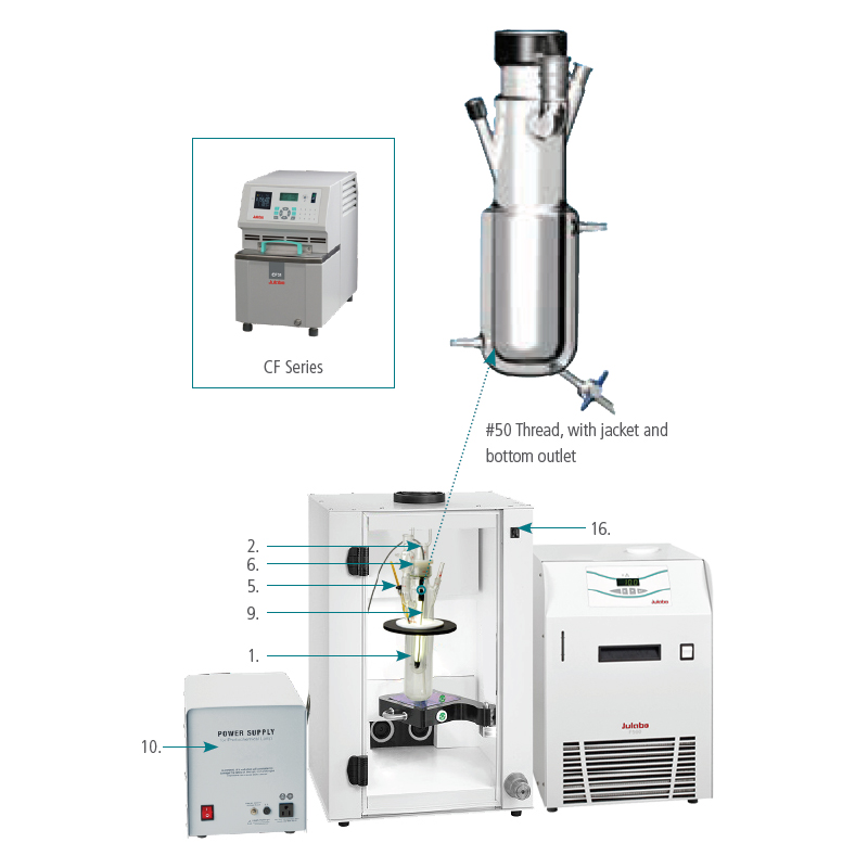 1、除 250ml 光化學(xué)套裝外,優(yōu)萊博還可提供 500ml 和 1000ml 套裝 2、推薦使用 JULABO 冷水機(jī)連接光源套管,對光源進(jìn)行降溫,并選配 Chemtron 液體流路自動監(jiān)測單元,確保在意外情況下自動切斷光源電源 3、推薦使用 JULABO 加熱制冷循環(huán)器對夾套反應(yīng)釜進(jìn)行控溫 |