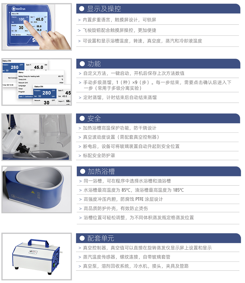 快速、Safe、穩(wěn)定和易用。 提供可靠的分離,濃縮和純化解決方案。 Strike 285 配備計(jì)時(shí)器,程序控制,自動(dòng)提升等功能。 更多的保護(hù)措施,包括:過(guò)熱設(shè)置和保護(hù),斷電時(shí)自動(dòng)升起,實(shí)時(shí)監(jiān)測(cè)蒸汽和冷卻水溫度等。