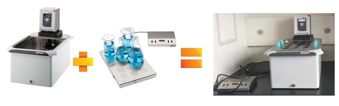 當(dāng)然,大家都知道磁力攪拌的效果會(huì)隨著樣品容器和攪拌位之間距離的增大而減弱。在我們的基礎(chǔ)方案中,攪拌器是直接鑲嵌在浴槽底部,攪拌器和樣品容器之間隔著一層底。為了讓樣品得到更充分的攪拌,縮短溶解時(shí)間以提.高整個(gè)實(shí)驗(yàn)的效率,小編忍不住要放大招了!